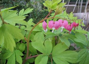 | Left: Dicentra "bleeding hearts", Perennial, Spring bloomer and happy in a shady location!!! |