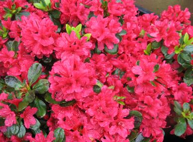 | Left: Azalea 'Hino Crimson' Evergreen shrub, spring bloomer, takes great to pruning and can tolerate the hot summer sun! |